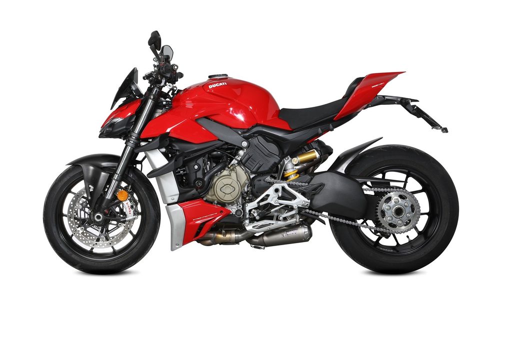 | Product info | [It keeps the genuine front pipe collectors.] [Titanium pipes.] [Remapping recommended.] [Compatible with original chain guard.] [MIVV noise emissions with dB-killer: 107 dB(A) @6375rpm. STOCK noise emissions: 106 dB(A) @6375rpm.] |