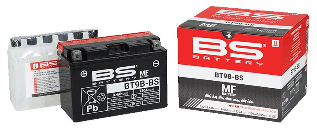 BT9B-BS battery is a part of our MF range. Delivered with an acid pack, this 12V 8.4Ah battery must be activated by filling the acid before first use.