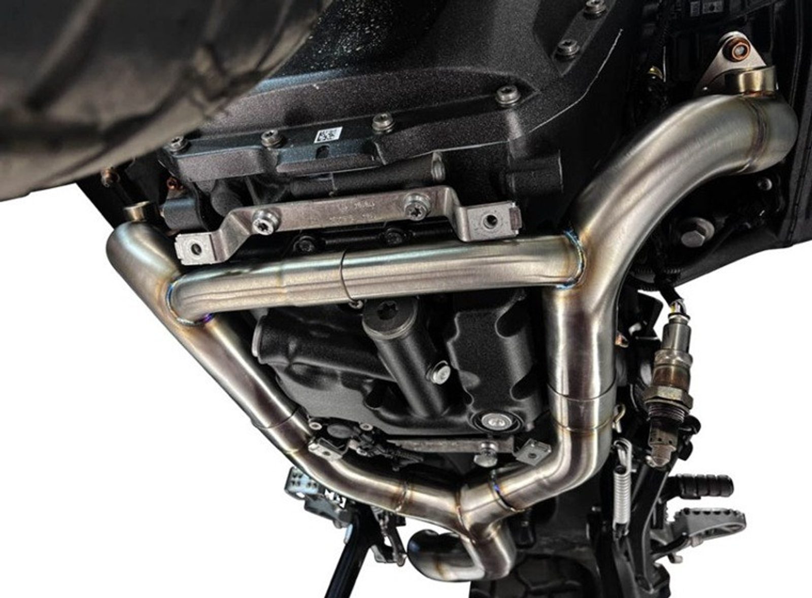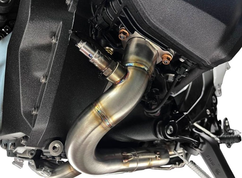 This fully titanium decatalyst manifold with visible TIG welding guarantees a weight saving of one-third compared to the original and also matches the original muffler. The catalytic converter is removed to maximize performance, which means it cannot be used for overhauls.