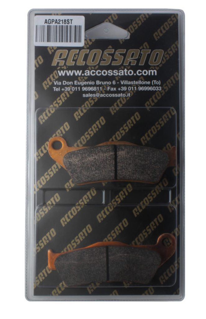 Accossato Brake Pad AGPA218 (dimensions 94x36.2x9). Brake pads kit available in SINTERED compound for guarantee a high and costant grip level at high