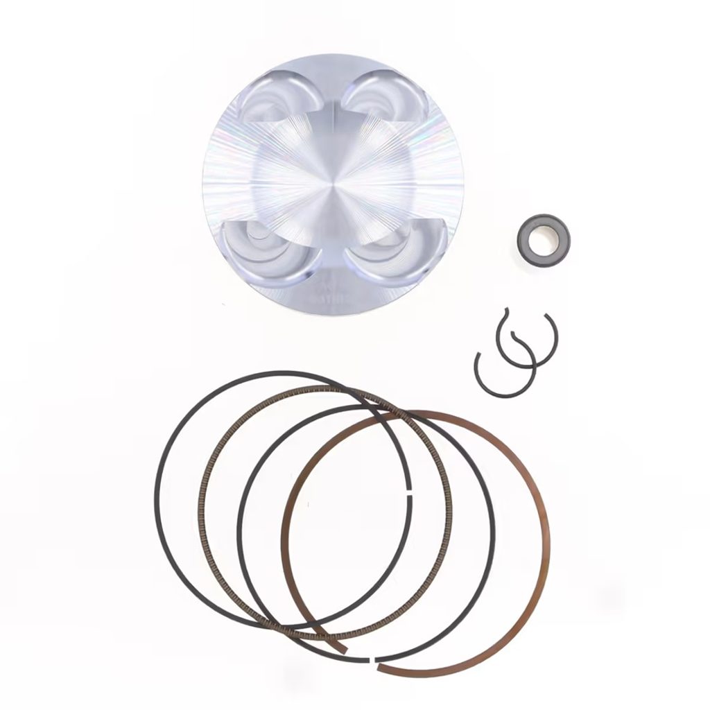 Forged piston manufactured by a revolutionary computerised technology coming from GP & F1races. High performance and reliability, sold complete with r
