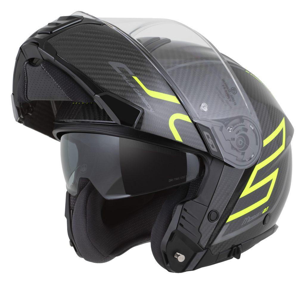 The Modulo 2.1 Plus Carbon helmet is a premium touring flip-up model with both the shell and flip-up section made from selected 3K carbon.