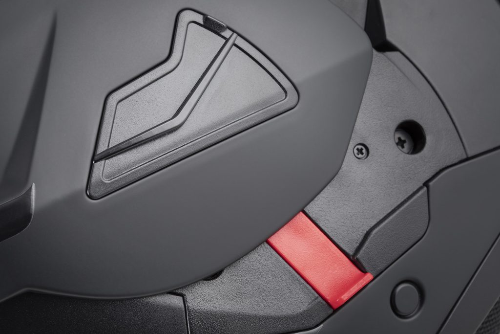 • Dual homologation ECE 22.06 P/J for both open-face and full-face use, with the option to lock the flip-up section in the open position using a safety latch.