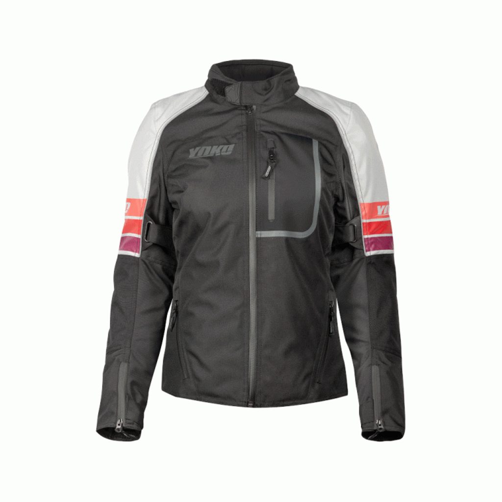 Modern women's motorcycle jacket YOKO Bulsa with an excellent cut and stylish design. It is made of (CE) certified comfortable and strong material Hydropol 600. The jacket has detachable and (CE) certified back, elbow and shoulder protectors. Strategically placed reflective elements and brightly colored panels further enhance safety. Comfort is provided by a breathable and waterproof YZ lining and a permanent ventilation hole on the back. The jacket is equipped with waterproof ESO zippers, which you will appreciate in rainy weather. Thanks to the detachable insulated lining, even cold weather will not surprise you. Thanks to two front pockets and a welded and waterproof chest pocket, the jacket provides enough space for small items such as keys, phone, wallet and more. You can attach the jacket to any motorcycle pants thanks to the zipper at the bottom. It fits best to YOKO Bulsa pants.