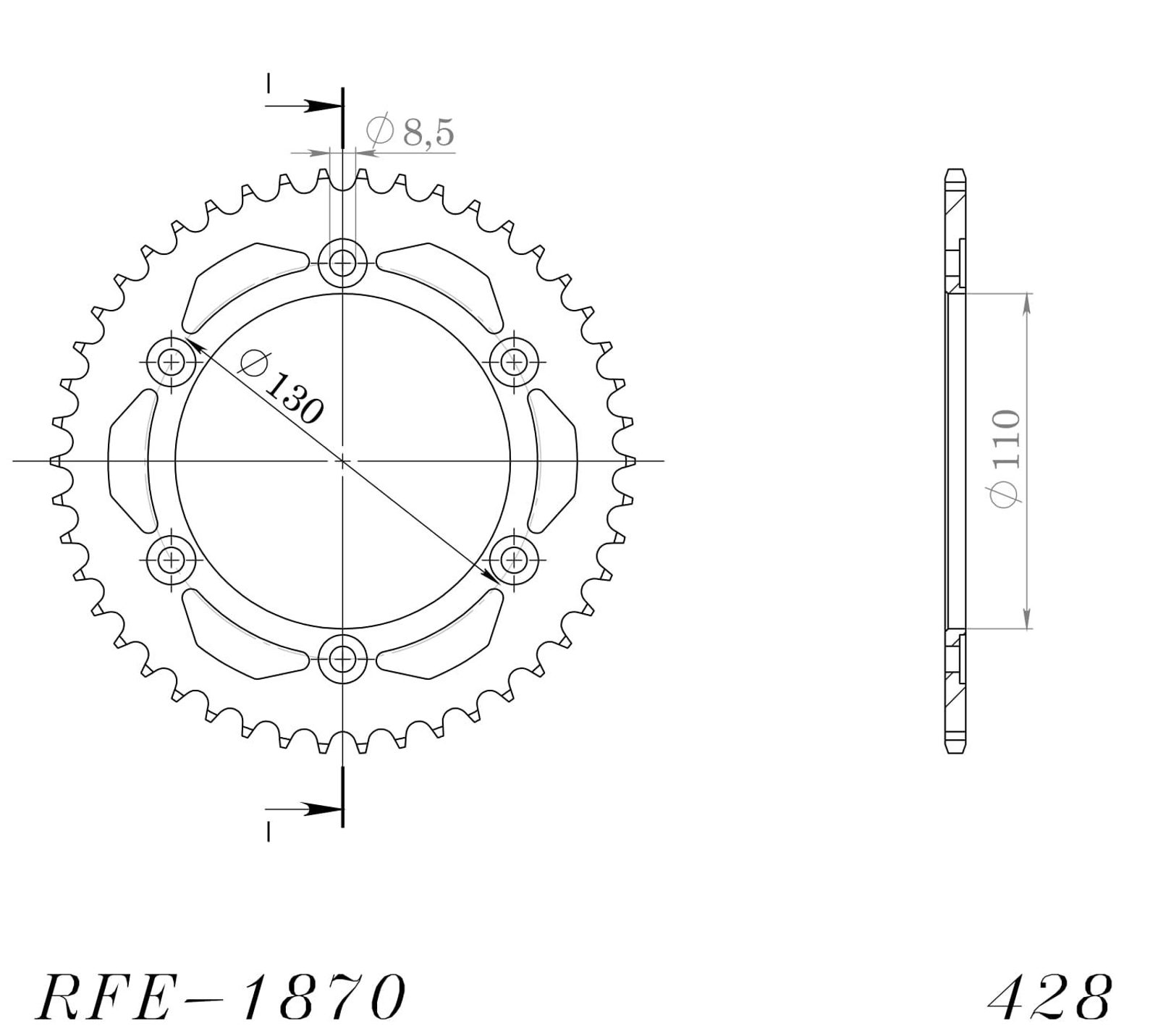 Lančenik zadnji SUPERSPROX RFE-1870:46-BLK Crni 46T, 428