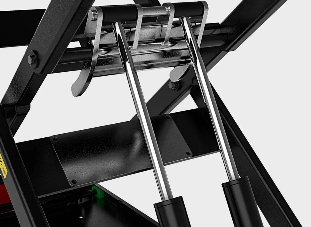 The hydraulic system with double cylinder equipped with a self- lubricating system for the seals allows infinite height adjustments of the LV8 NANO motorcycle lift ensuring the best reliability both when going up and down, without having to manually insert or release mechanical levers.
