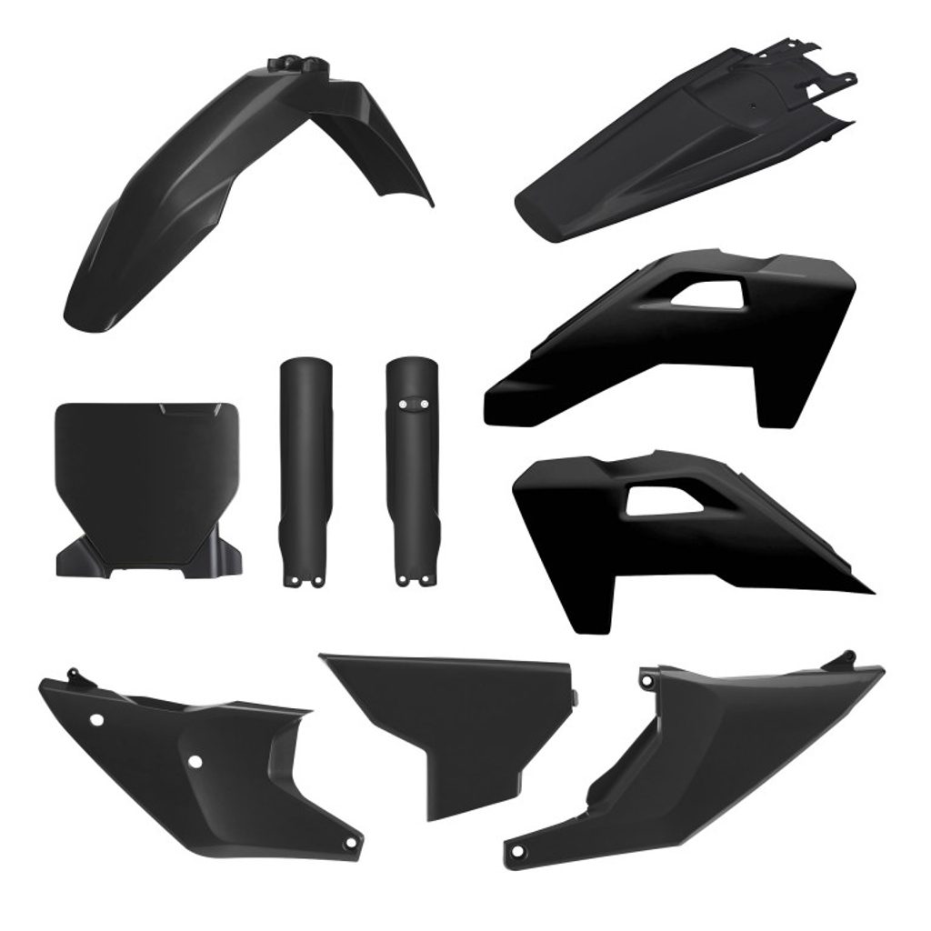 Includes all parts for a complete replacement. Polisport's Full Plastic Kits ensure a perfect fit and OEM quality on your dirt bike. Made from durable, flexible, and resistant materials that can withstand the hardest challenges of off-road riding.