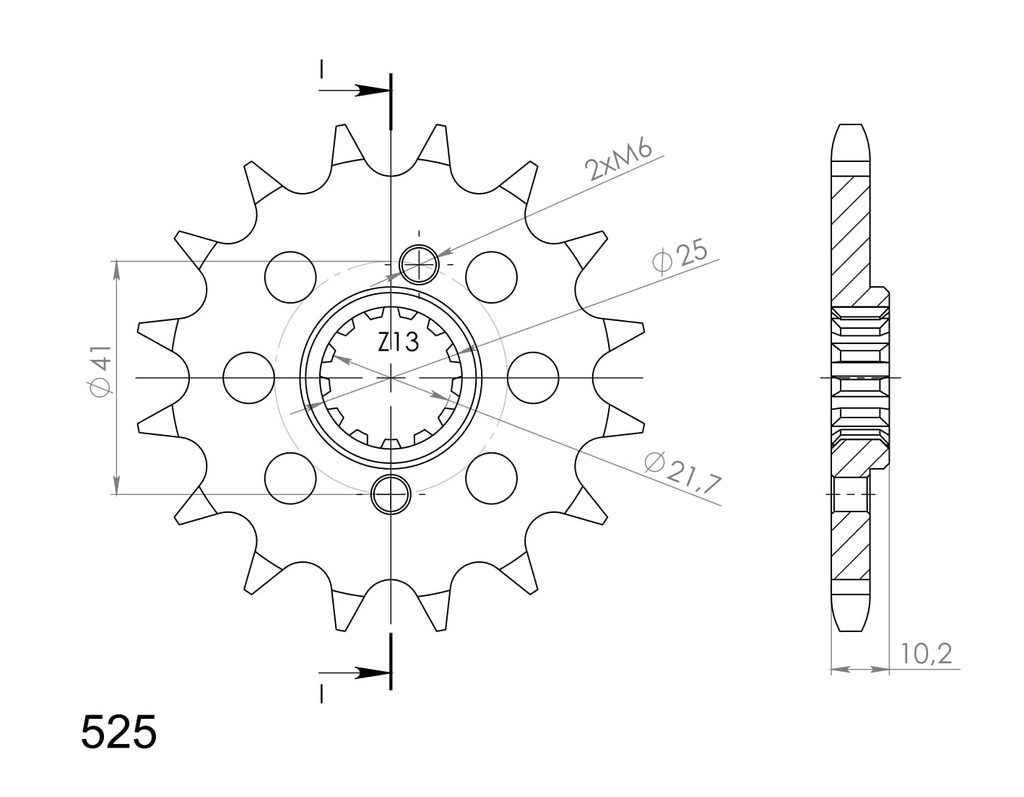 Every sprocket has weight reduction, with radial holes or radial slots (Forged models only) .