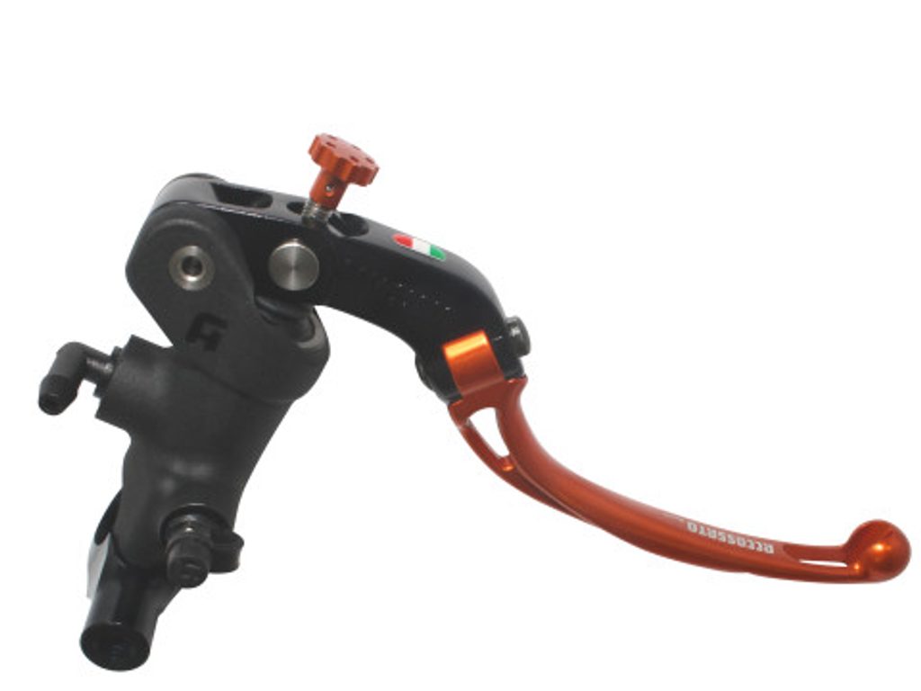 Radial brake master cylinder ACCOSSATO 19 x 19 with folding lever,orange