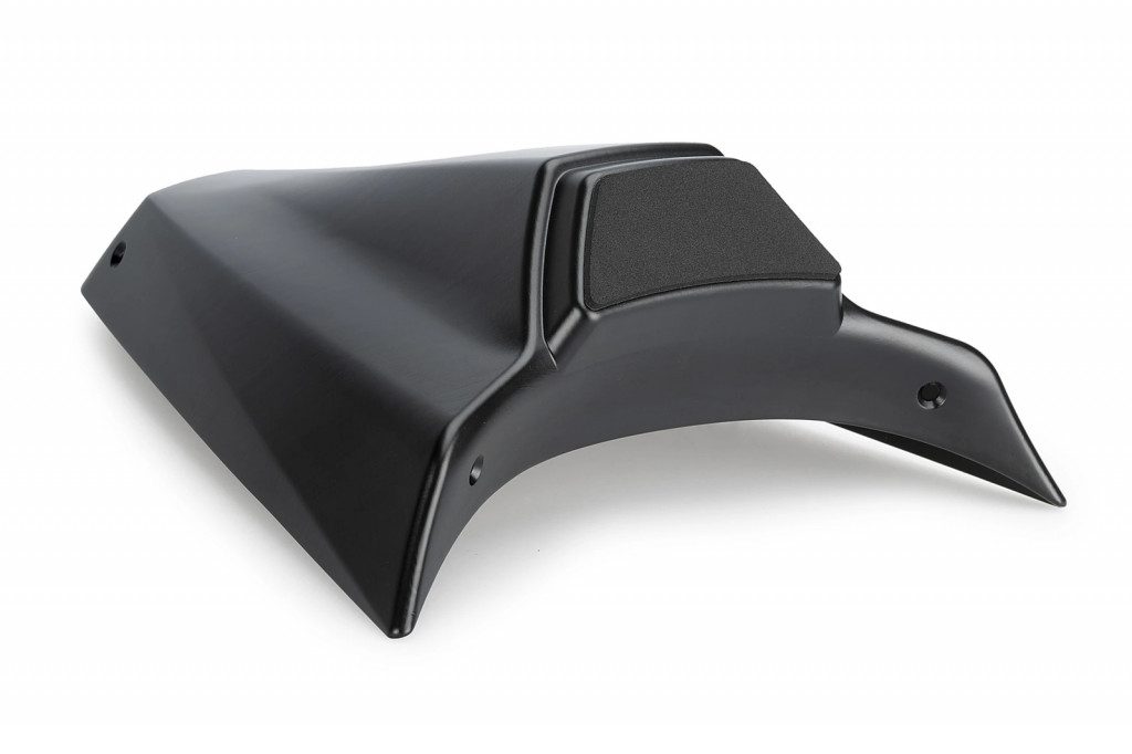 Its design fits perfectly with the new subframe of the R1300GS, featuring sharp and angular lines that reinforce Puig’s PISTA concept. Notable are the two diagonal lines that follow the subframe geometry and the raised section in the seat area, which provides additional support for the rider at high speeds.