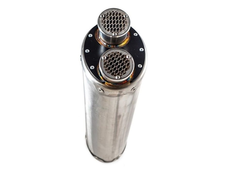 GPR developed the Dual Inox series after the victories in the Moto3 World Championship. The Dual Inox exhaust has a removable racing grill with CNC-machined bottoms. It is made of hand-brushed stainless steel with an oval shape, and a diameter of 100 MM.