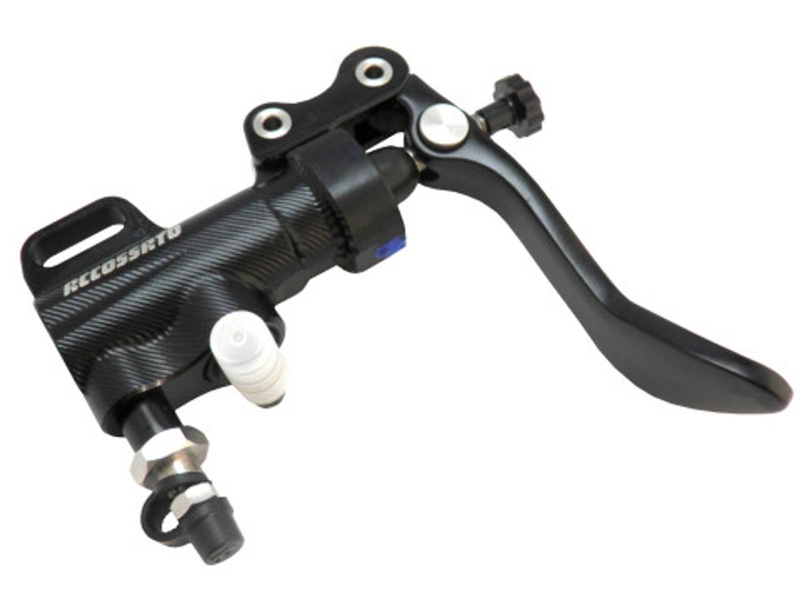 The Accossato Thumb Rear Brake Master Cylinder for motorcycles is in CNC-worked aluminium with a superficial hard oxidation tratment in black. The Pis