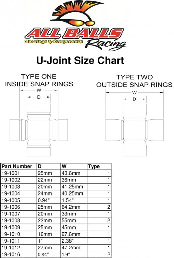 PDF All Balls U-Joint size chart