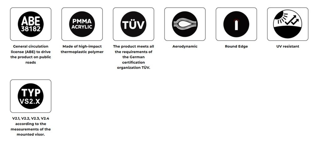 The windshield has a rounded contour of> = 2mm, complying with the TÜV regulations.